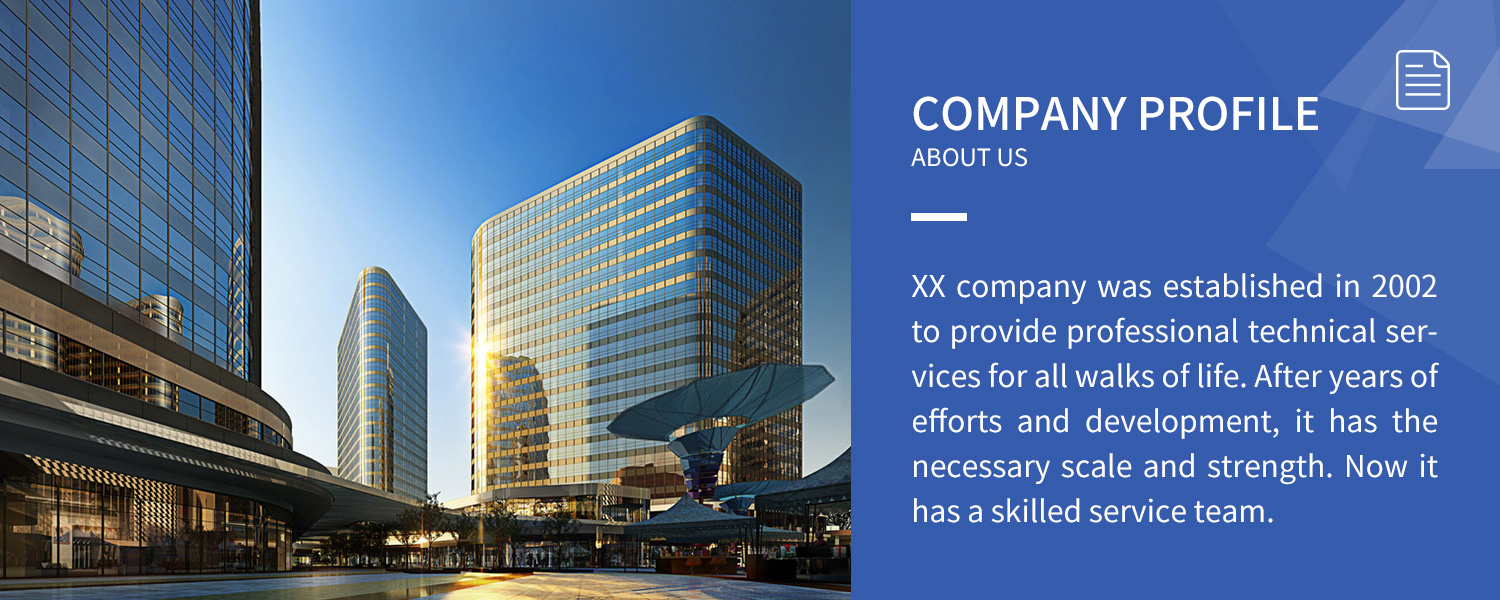 Established in 2002, XX company is a comprehensive service-oriented decoration enterprise integrating indoor and outdoor design, decoration engineering, brand planning, advertising production, exhibition, air conditioning electromechanical and decoration. It is one of the most professional engineering and design companies in Tianjin.